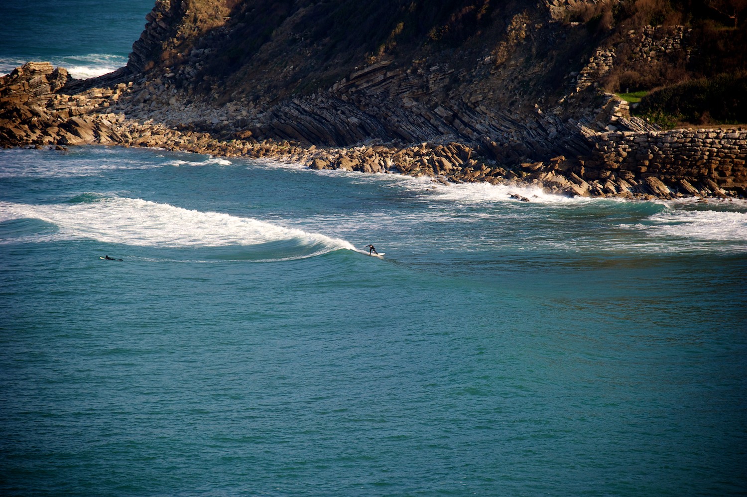 Omdat Bilbao te winderig bleef, zochten we ons surfheil iets oostelijker. Bij San Sebastian. En dat was inderdaad beter. In de meest oostelijke baai van deze stad kon je volop surfen.